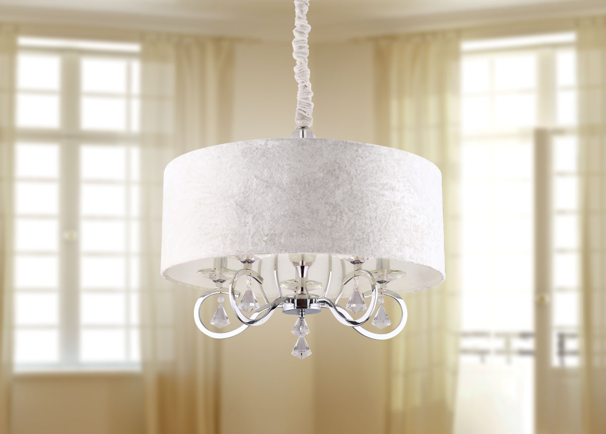 Die raffinierten AMSTERDAM-Leuchten kombinieren die Form eines klassischen Kronleuchters mit einem interessanten, großen, plüschigen Leuchtenschirm. Das Material mit einer charakteristischen Textur verleiht der Leuchte ein ungewöhnliches Aussehen. Die Aura von Eleganz und Luxus wird durch glänzenden, verchromten und kristallbesetzten Metallarme verstärkt, welche reizvolle Reflexionen erzeugen. Die AMSTERDAM-Produktfamilie ist eine großartige Ergänzung einer glamourösen Inneneinrichtung im Hampton-Stil. Als Teil eines raffinierten Arrangements verleihen die Leuchten mit ihren weichen Formen und ungewöhnlichen Texturen dem Schlaf- und Wohnzimmer eine sehr gemütliche Atmosphäre.