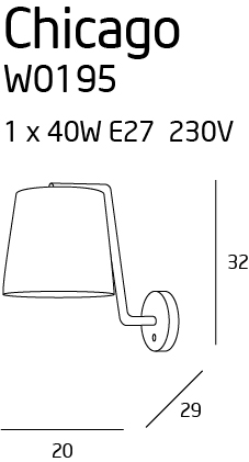 CHICAGO W0195 Wandleuchte 1-flammig, Korpus: Chrom, Lampenschirm: Textil