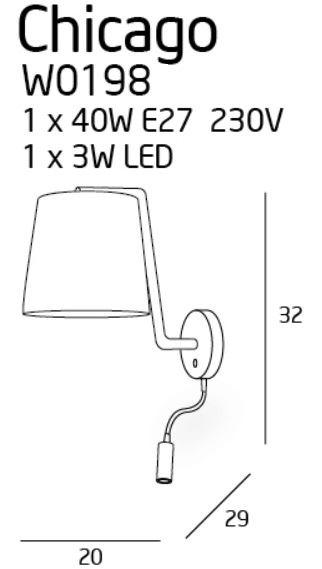 CHICAGO ist eine Familie von Lampen, die es ermöglichen, eine interessante Lichtanordnung für Räume mit besonderen Anforderungen zu realisieren. Sie umfasst vier Modelle: eine Stehlampe, eine Schreibtischlampe,eine Wandleuchte und eine Wandleuchte mit einem zusätzlichen Lichtpunkt auf dem Schwanenhals. Sie können leicht an jedes Interieur angepasst werden, dank ihrer klassischer Form und Farben: zwei Lampenschirme (weiß und Schwarz) und drei Grundfarben (Weiß, Schwarz und Chrom). Die CHICAGO Produktfamilie wurde mit Blick auf die Inneneinrichtung von Hotels geschaffen, aber dank ihrer Vielseitigkeit wird sie auch zu einer ausgezeichneten Wahl für ein Privathaus.