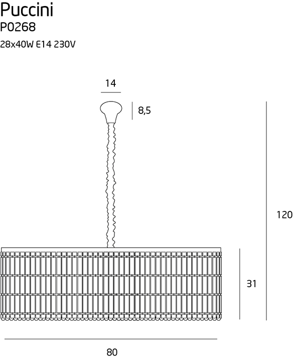Wenn Sie eine stilvolle Leuchte suchen, die die Blicke auf sich zieht und eine Atmosphäre von Eleganz und Luxus schafft, sollten Sie auf die Produktfamilie PUCCINI einer genaueren Betrachtung unterziehen. Eine Vielzahl kleiner Glaskristalle zerstreuen das Licht und erinnern an hundert Gläser Champagner, die zu einem Toast erhoben werden. Zur Zeit sind sechs Modelle erhältlich: drei Deckenleuchten und drei Pendelleuchten. Das größte von ihnen hat einen Durchmesser von bis zu 80 cm und kann ein bedeutendes Dekorationselement in einem Wohnzimmer oder einer Lobby werden. Das kleinste, mit einem Durchmesser von 40 cm, wird auch kleine Räume - Schlafzimmer, Esszimmer, Kanzlei oder ein Hotelzimme - wunderschön beleuchten und dekorieren. PUCCINI passt hervorragend zu Innenräumen, die unabhängig von ihrer Größe funkelnde Kristalle, Glitzer und Glanz benötigen, mit viel Licht, das dem Auge schmeichelt.