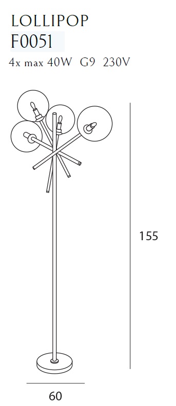 Produktinformationen "LOLLIPOP BK F0051 Stehlampe 4-flammig, Ø: 60 cm, Korpus: Schwarz"